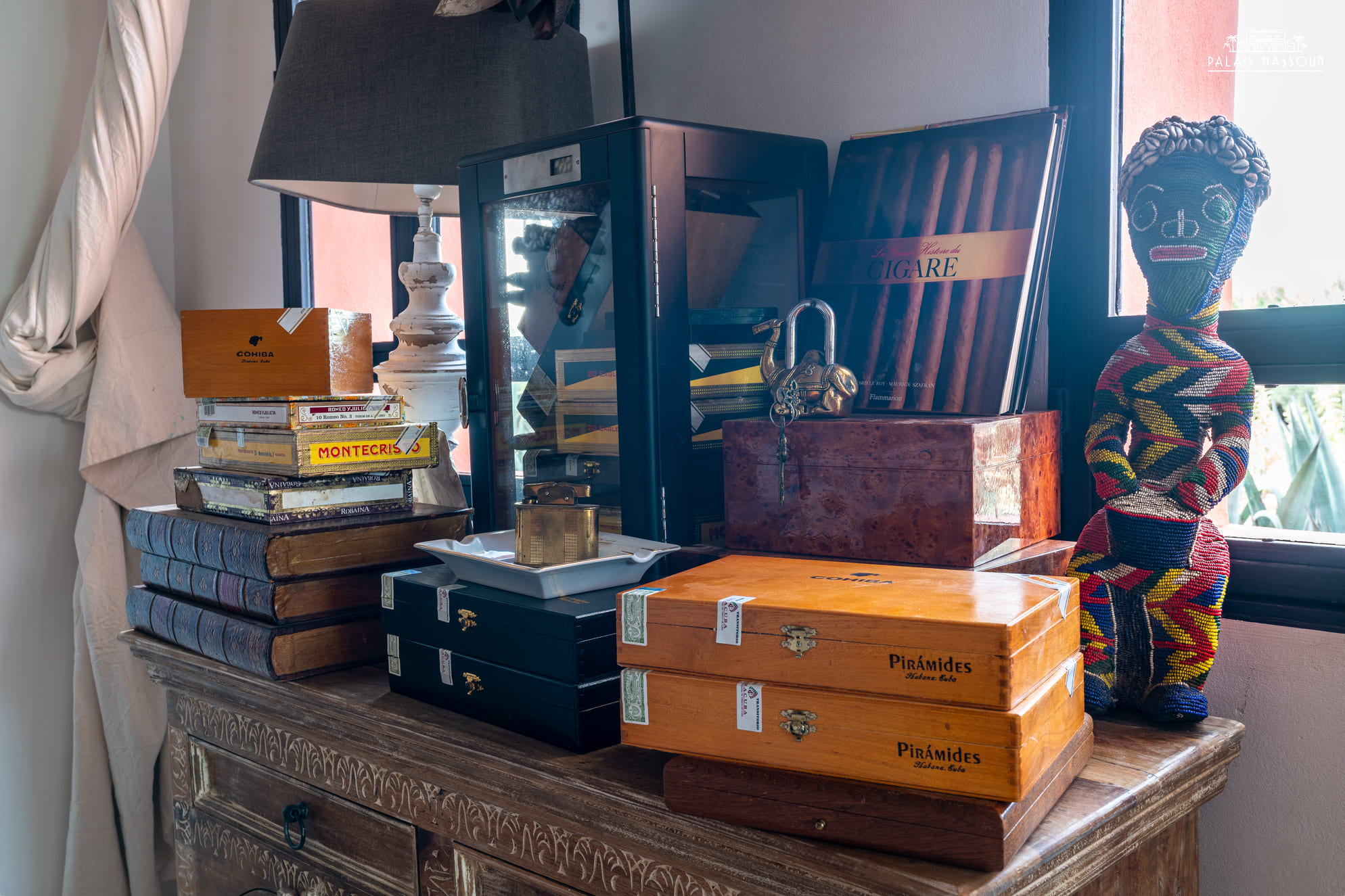 Seats 18 guests. Bar and small ethnic art gallery opening onto a terrace.